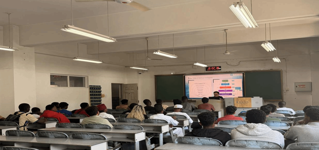 下午,计算机通识课拉开帷幕,随后新生参观计算机实训室与机器人实验室。智能设备的演示、机器人的灵活操作,让新生们直观感受科技魅力,对人工智能领域产生浓厚兴趣。来自巴基斯坦的新生Hanzla表示:"一周的活动丰富多彩,从文化体验到专业认知,让我对未来的学习充满期待,已经迫不及待想要开启正式的校园生活了。"